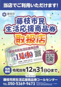 「藤枝市民生活応援商品券」につきましては、TSUTAYA藤枝瀬戸新屋店でご利用いただけます。